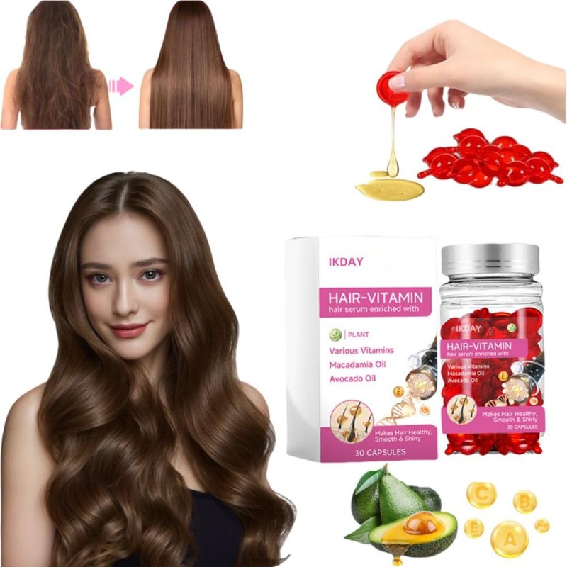 - Nourishing Hair Vitamin Oil Capsules: Formulated to nourish from root to tip.Enriched with a potent blend of Moroccan oil, macadamia oil, and avocado oil, along with vitamins A, B5, C, and E, these hair vitamin oil capsules deeply nourish damaged hair, promoting healthier, more vibrant locks with every application.Experience the ultimate transformation with our hair vitamin treatment serum.