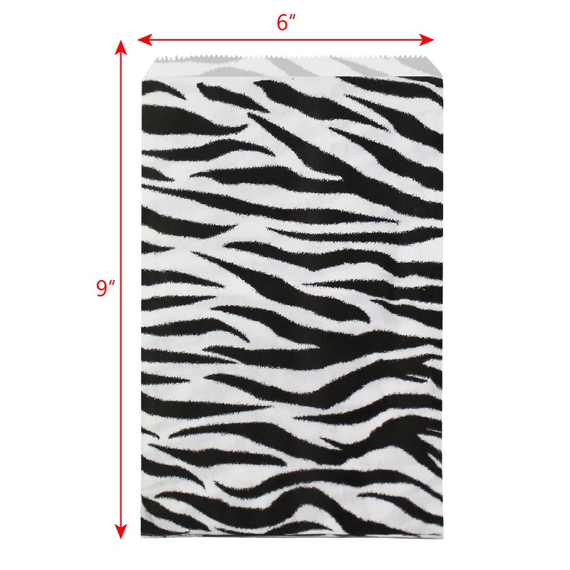 Ikee Design 200 Pcs of 6" X 9" W Flat Plain Paper or Patterned Bags for Candy, Cookies, Merchandise, Party favors, Gift bags, Small Paper Bags with Zebra Animal Print
