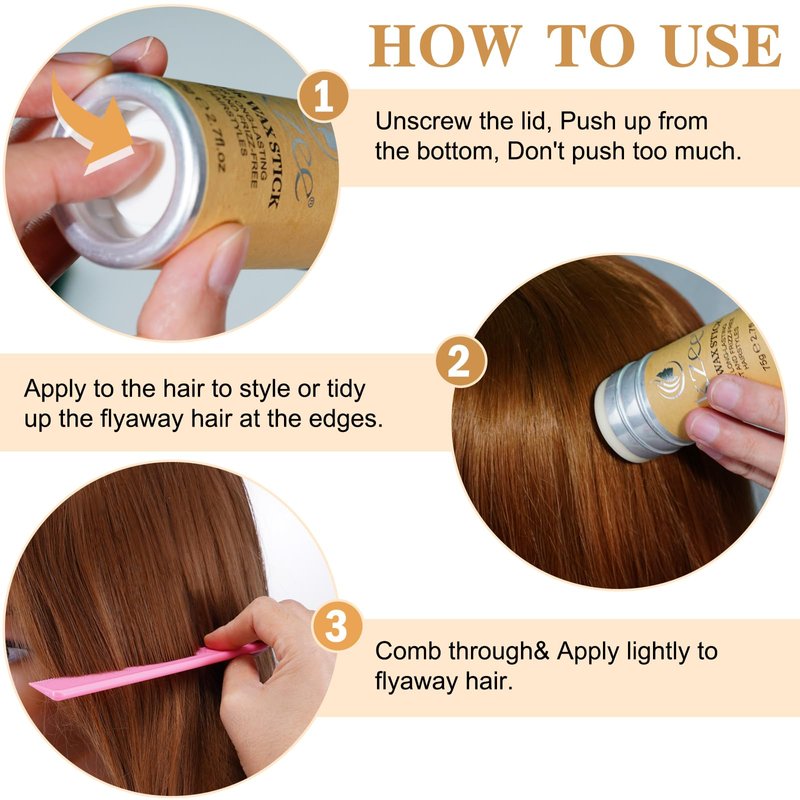 - Apply the hair wax stick on the area of your hair that needs to be controlled, quickly tame flyaway hair, can use hair stick wax & slick back hair brush to create hair styles that stay in place all day long.