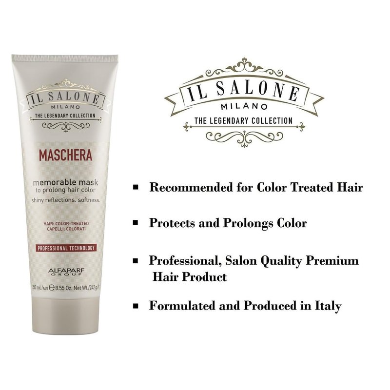 Il Salone Milano Professional Memorable Hair Mask for Color Treated Hair - Conditioning Mask to Protect and Prolong Silky Hair Color & Shine - Salon, Premium Quality Care (8.55 oz / 250 ml)
