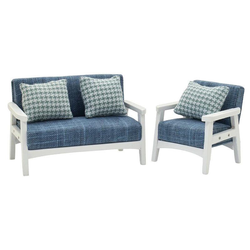 iLAND Dollhouse Couch and Miniature Sofa Set with Mini Houndstooth Cushions, Dollhouse Furniture on 1/12 Scale for Dollhouse Living Room (Sky Blue)