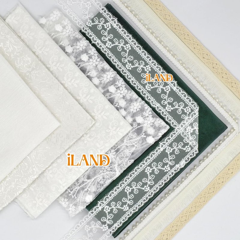 iLAND Dollhouse Fabric Bundles w/Laces, DIY Dollhouse Bedding, Curtains, Cusions, Tablecloths or Doll Making (Gorgeous Arias)