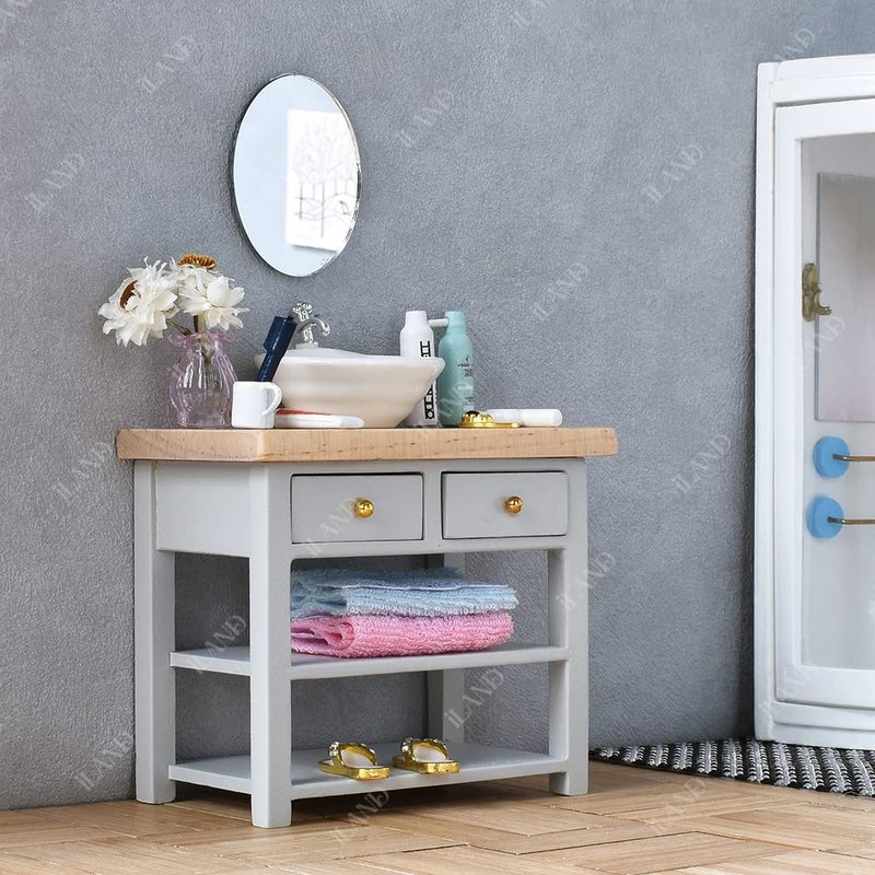 - MINI THINGS, BIG FUN: Without any trouble with unsuited size, the mini bathroom is exactly designed on a 1:12 scale. (PLEASE NOTE: Because Barbie is on 1/6 scale, it is dose NOT FIT for Barbie. ) All drawers and doors are movable. With it, doll houses are full of attractive life atmospheres. Dollhouse time will be easy and joyful!