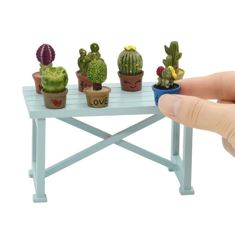 iLAND Miniature Dollhouse Accessories and Furniture, Dollhouse Table w/Succulent Dollhouse Plants 8pcs Fit Dollhouse & Fairy Garden