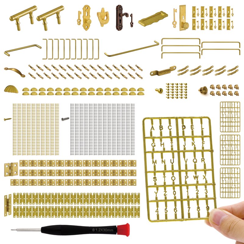- Complete Dollhouse Hardware Pack: Designed to provide every essential doll house hardware, this meticulous choice of dollhouse building supplies includes mini hinges for crafts, miniature handles for dollhouse furniture, dollhouse door locks, mini screws and a screwdriver with dia. 1.2mm, total 20 kinds over 700 pcs, ensuring that your mini projects are fully met with harmonious and precision.