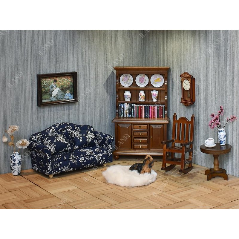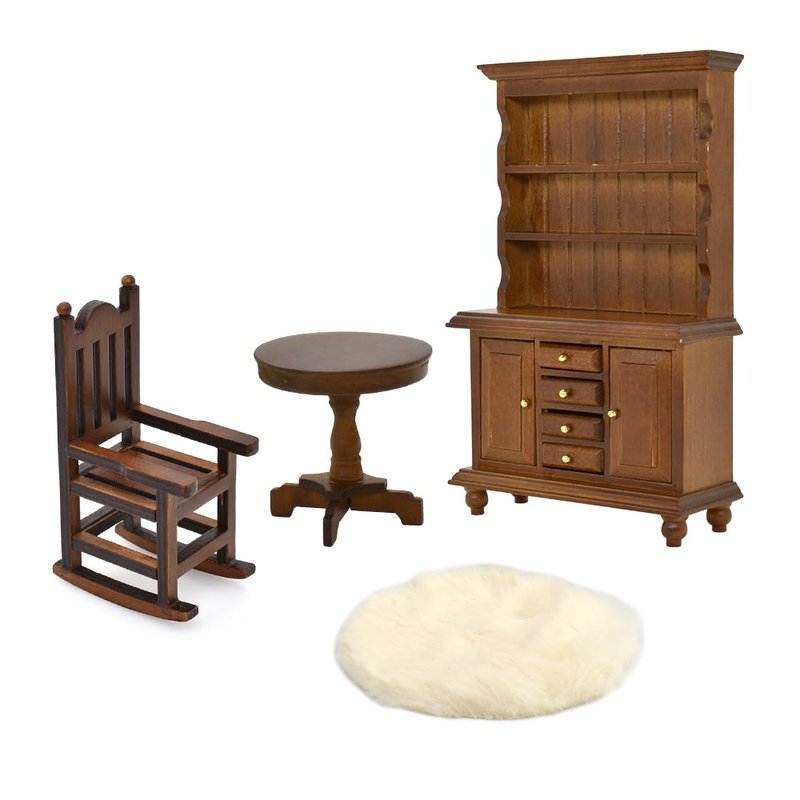 - CLASSIC DOLLHOUSE LIVING ROOM SET: This dollhouse furniture set includes 1 bookcase, 1 side table, 1 rocking chair, and 1 rug, which will make a classic dollhouse living room on the country style.