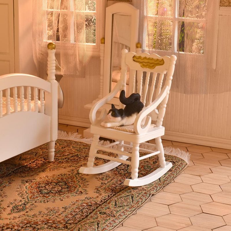 - EXCELLENT CRAFTSMANSHIP: With excellent craftsmanship and exact 1:12 scale, this doll house bedroom set will bring you to a magical miniature world full of realistic details. All of the drawers and doors can be opened. You could imagine a leisurely afternoon with the rocking chair, and an exciting trying-on time before a fancy dress party. What a unique and amazing gift!