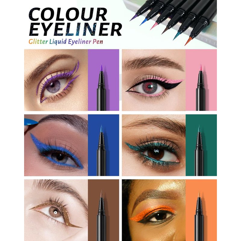 Designed to enhance your eye makeup with vibrant colors and a touch of sparkle, this high-quality liquid formula effortlessly glides across your lids, helping you create precise lines and stunning looks. Whether you're aiming for a bold and dramatic effect or a subtle pop of color, our glitter eyeliner is perfect for any occasion.