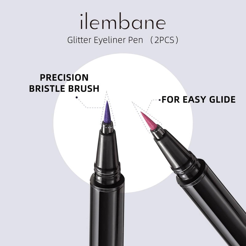 ilembane Shimmer Purple Pink Liquid Eyeliner, Easy to Apply Long lasting Glitter Makeup Metallic Satin, 2 Pcs Set