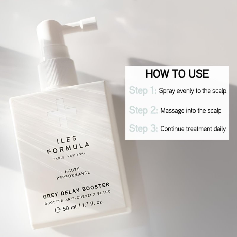 - HOW TO USE - Spray evenly to the scalp, focusing on areas of grey or white hair and massage to ensure even distribution. Do not rinse. Hair color treatments during this period will not affect the efficacy of this formula. Continue treatment daily for a minimum of 3 months. Once the desired result is achieved, use 2-3 times a week to maintain. For optimal results, use with the Iles Formula Shampoo + Conditioner.