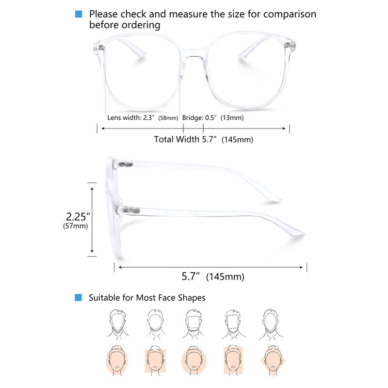 - 👓✦Easy to Match✦: The blue light blocking glasses simple and stylish design is suitable for all face shapes and can also be used as your daily outfit. You can switch prescription lenses to this exquisite frame anytime, and the minimalist style won't conflict with you