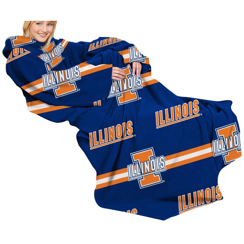 Illinois Fighting Illini Adult Comfy Throw Blanket with Sleeves, 48" x 71"