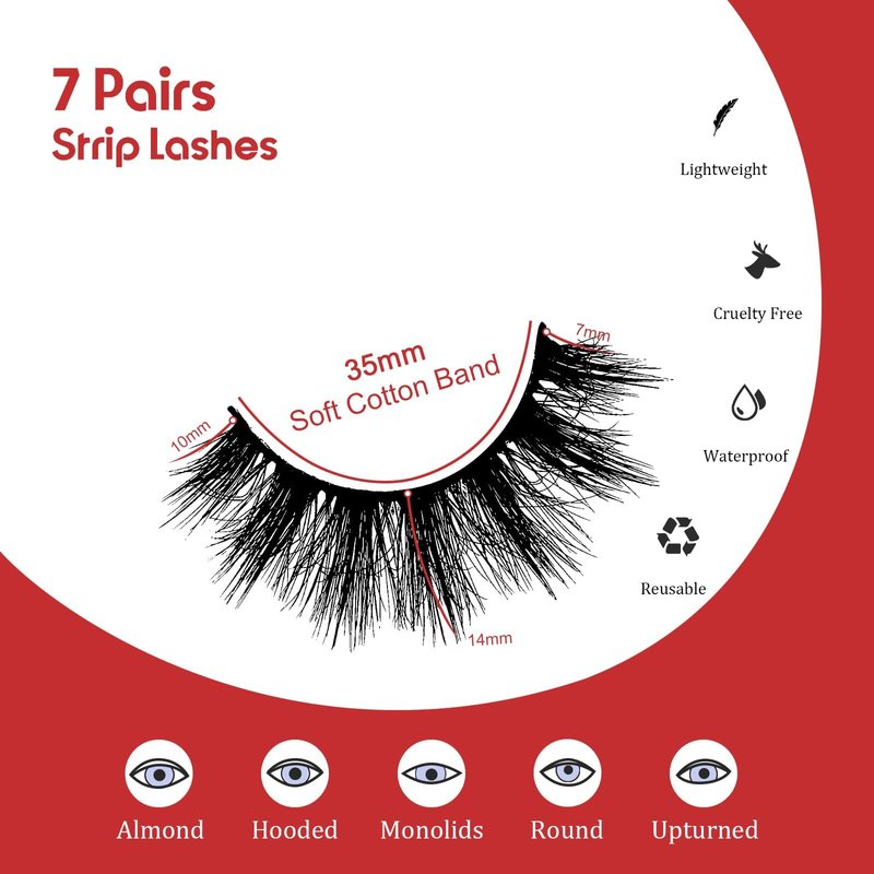 - 7 pairs of fluffy faux mink lashes, are everyday wearable volume, cruelty-free, contact lens friendly and look as natural, but better. Because curated with 20-year experienced lash researcher, the wispy faux mink eyelashes are handcrafted with the finest luxury synthetic fibers to provide ultra-lightweight, natural-looking, soft and durable curl lashes strips. The wispy strip lashes are reusable up to 15-20 times and safe for users