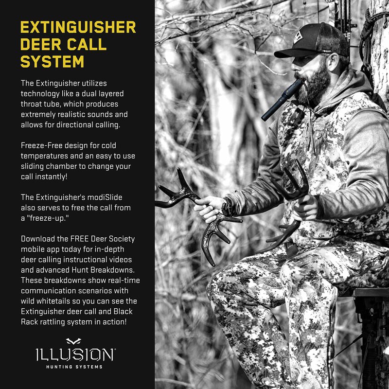 - Deer Hunting Accessories - Attracting and luring in wild animals during hunting season just got a lot easier thanks to Illusion Systems Extinguisher Deer Call, a must-have for the serious hunter!