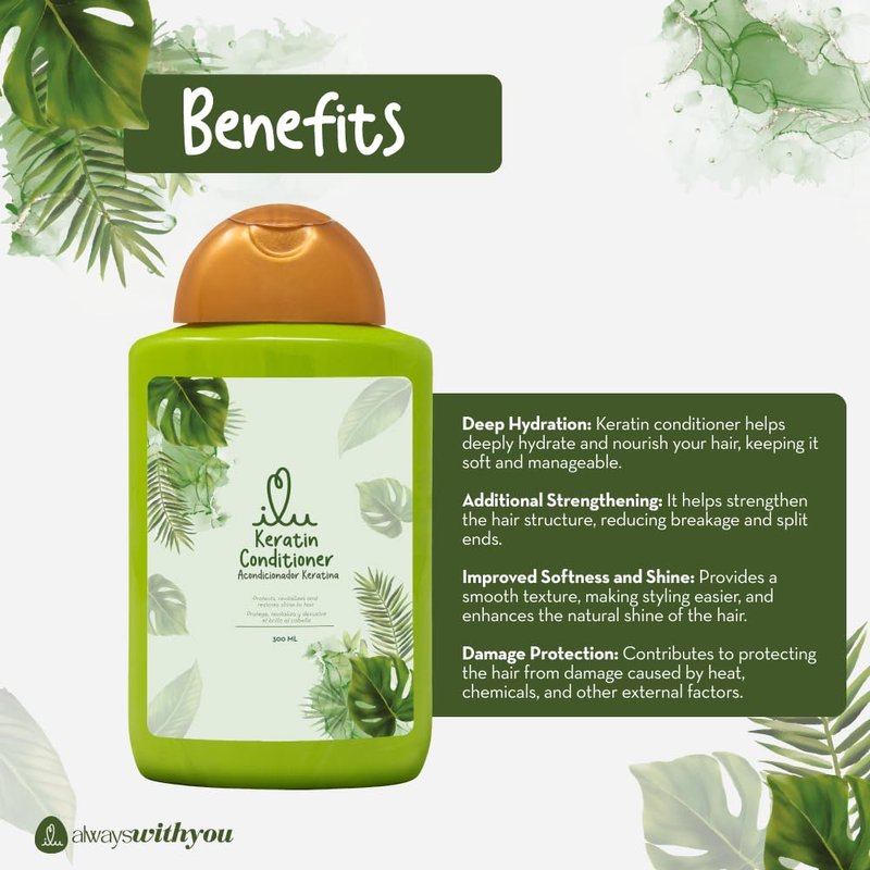 ILU Keratin Conditioner for Hair 10fl (Pack of 1) – Keratin complex for Strengthening Hair, treatment for Damaged Hair, Frizz Control, Smooth & Shine Hair, bringing the strongest & healthiest hair.