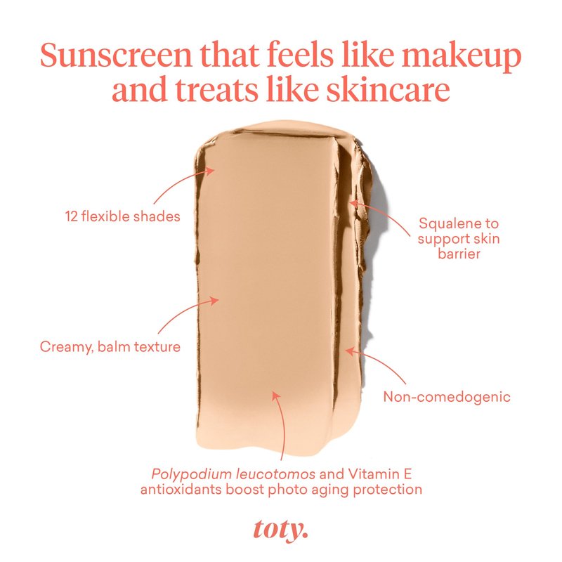 - Why you’ll love it: Sofia’s favorite toty face sunscreen! Suitable for all skin types, including sensitive! Blurs imperfections just like a filter for your face! Don’t be fooled by the compact—this is not powder, but a creamy, yummy foundation balm. Light, non-cakey coverage. Non-comedogenic—no breakouts! Eye safe. Lightly scented so no sunscreen smell. Talc-free. Vegan, cruelty-free, dermatologist tested and free from parabens, every toty product is third-party tested.
