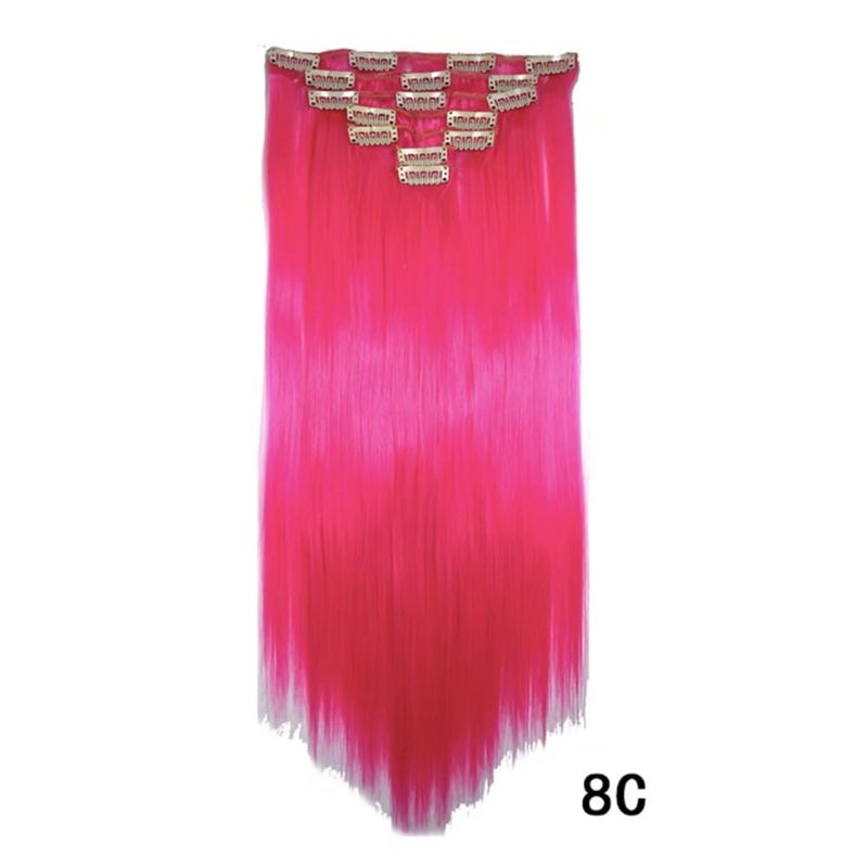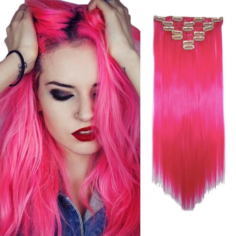 iLUU 22 Inch Hot Pink Color Party Cosplay Straight Hair Clip in Extensions 22" 100g Synthetic Hair piece 7pcs Full Head Hair Extension Pieces 16 Clips ins for Women (#8C-Hot Pink)