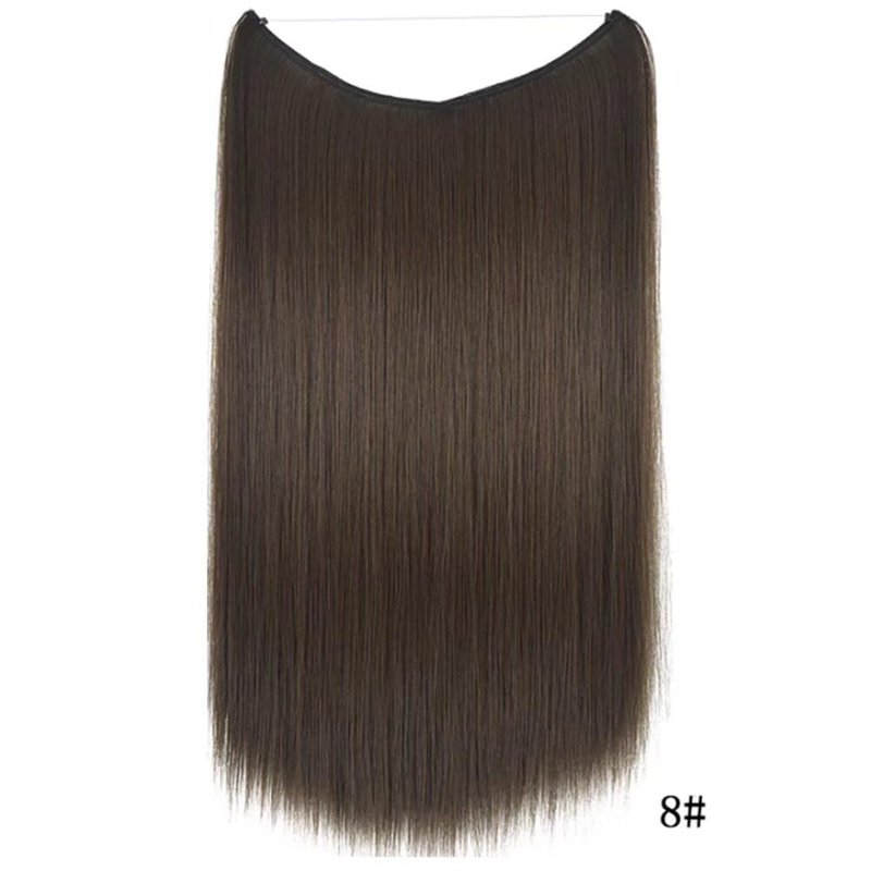 iLUU Hidden Invisible String Synthetic Hair Extensions One Piece Secret Wire Hairpiece With Transparent Fish Line No Clips No Tape #8 Black Brown Color 22" 80g Natural Hair for Women Girl
