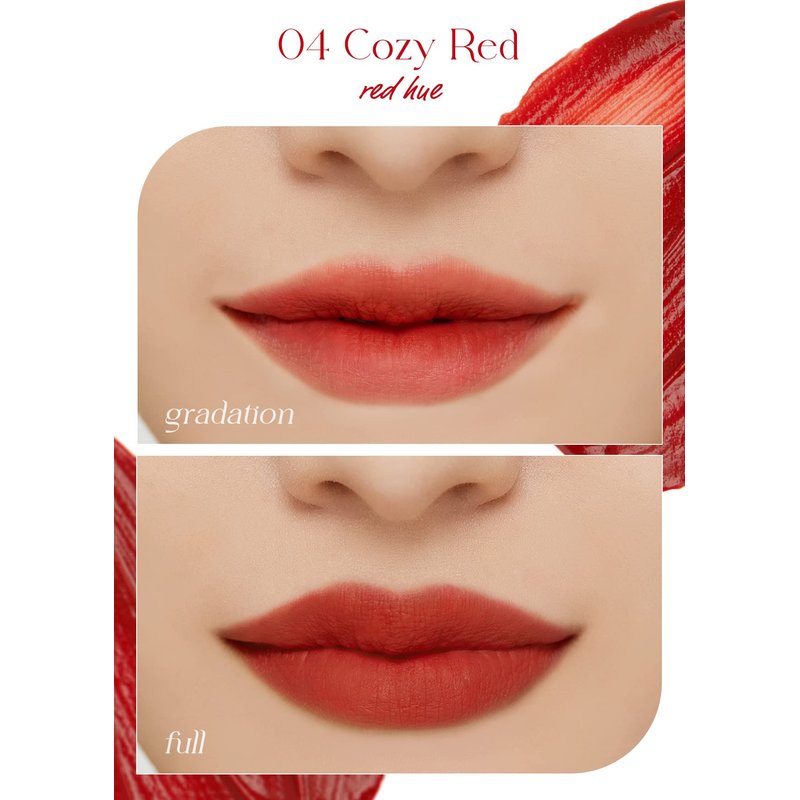 I'M MEME Lip Stain - Color Key Ring Velvet Tint - Gift, Highly-pigmented, Long Lasting, Travel-Friendly, Velvet Finish, 04 Cozy Red, 2.8 g
