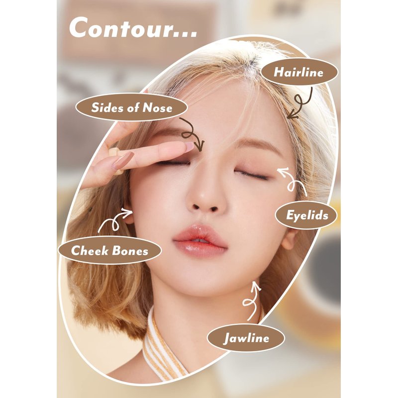 - HOW TO USE: 1. Hairline: Contour from the temples down to the chin for a slimmer-looking face. 2. Jawline: Contour along and under the jawline for a sculted jaw. 3. Cheekbones: Contour from the temples towards the mouth for defined cheekbones. 4. Sides of nose: Contour from the front of the brows down to the bottom of the nose for a slimmer and higher-looking nose. 5. Eyelids: Contour the eyelids in swiping motions for deeper-looking eyes.