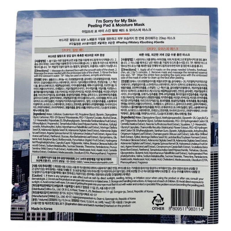 Discover the ultimate Korean skincare experience with the I'M SORRY FOR MY SKIN Peeling Pad & Moisture Mask. This 2-step skin care travel essentials kit includes: 1. Exfoliating face pads: gently slough off dead skin cells and impurities, revealing a brighter, smoother complexion. 2. Hydrating moisture mask pads: packed with nourishing botanicals to drench your skin in soothing moisture, leaving your skin plump and glowing. This Korean beauty set is the ultimate self-care indulgence for girls and women alike. Designed to give you glass skin wherever you go. Perfect for all skin types, this kit combines effective exfoliation with deep hydration to deliver a radiant, dewy glow skin. Compact and convenient, this kit is ideal for travel and vacation essentials. Achieve a flawless complexion with our premium skincare duo, perfect for both daily use and on-the-go skincare routines. Whether you're looking to cleanse and exfoliate or deeply moisturize, the I'M SORRY FOR MY SKIN Peeling Pad & Moisture Mask has you covered. Say goodbye to dull skin and hello to a radiant, refreshed look with this essential Korean skincare kit.