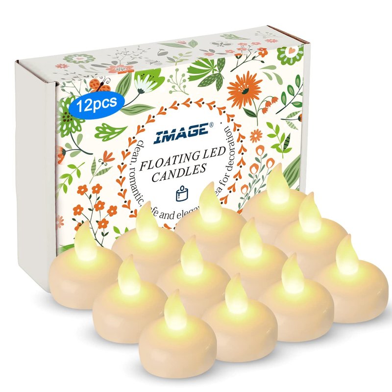 IMAGE Floating Candles, Flameless Floating LED Tea Lights 12 Pack Waterproof Tealight Candles for Wedding Party Spa Home Indoor Outdoor Decor-Warm White