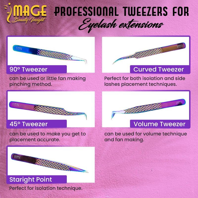 - MULTIPLE USES - This premium tweezer pack comes with 5 different tweezers. They are great at meeting all eyelash needs. Also, an ideal gift for your female friends! They are suitable for spas, nail salons, and beauty salons.
