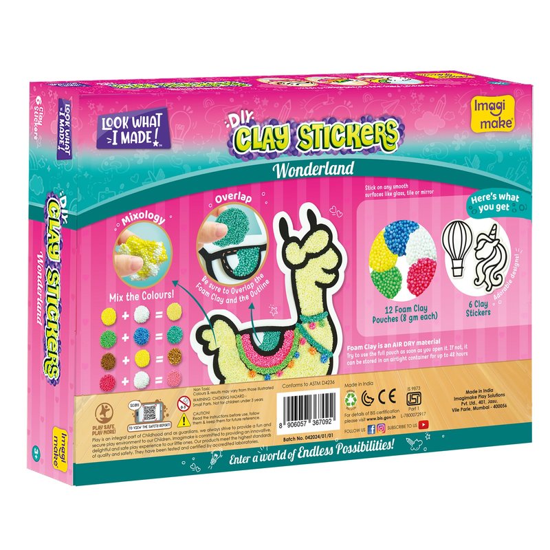 Imagimake Clay Stickers: Wonderland | No Mess Air Dry Foam Clay for Kids, 12 Clay Pouches, 8 Colors, 6 Unique DIY Stickers | Kids Craft Supplies, Travel Toys | Birthday Gifts for Kids Ages 3 4 5 6 7 8