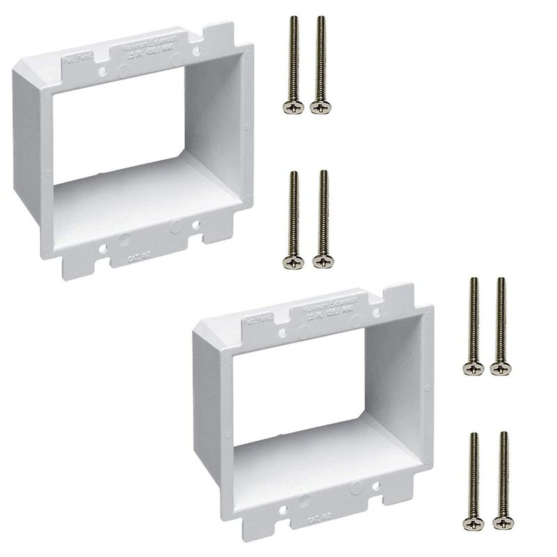 iMBAPrice BE2-2 (2-Gang) Electrical Power Outlet Box Extender - White, 2-Pack (Made in USA)