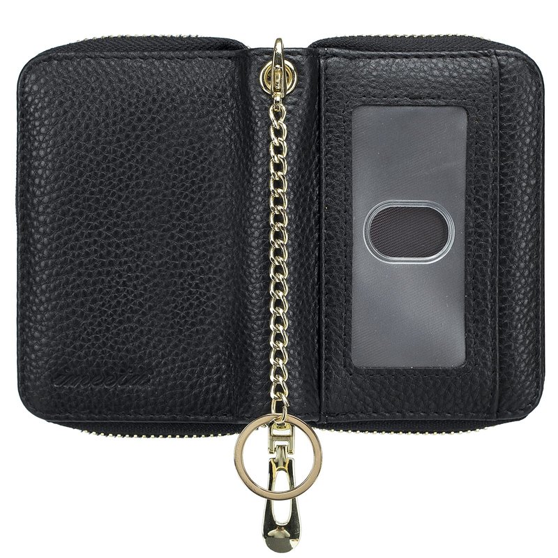 imeetu RFID Credit Card Holder, Small Leather Zipper Card Case Wallet with Removable Keychain ID Window (Black)