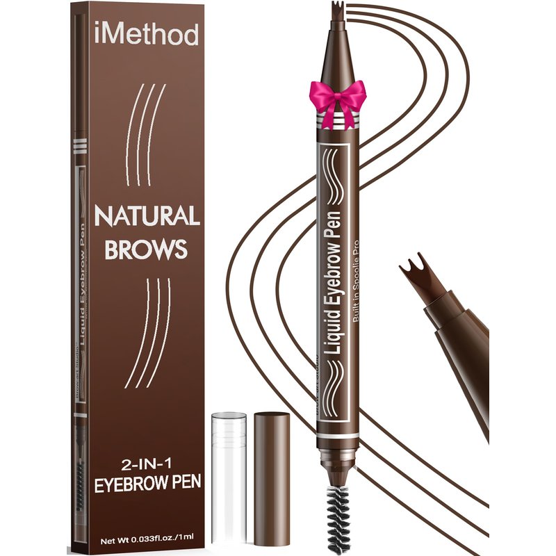iMethod Microblading Eyebrow Pen - Eyebrow Pencil 2-in-1 Dual-Ended Eye Brow Pencils for Women with 3-Fork-Tip and Spoolie Brush Create Natural Hair-Like Defined Brows, Last All-Day, Dark Brown