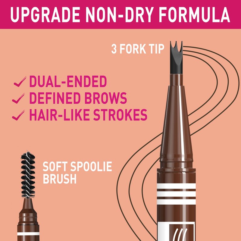 - Unique Brow Pen: 2-in-1 eyebrow pencils for women has 3-fork-tip to fill in sparse areas, draw hair-like strokes, shape and blend with spoolie brush for defined natural-looking eyebrows; DARK BROWN is for dark brown hair