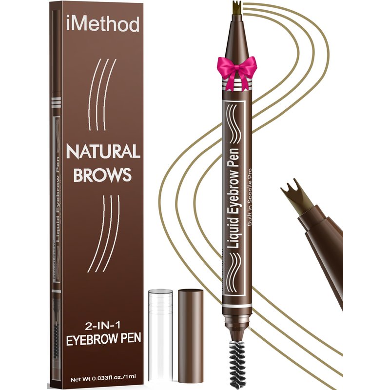 iMethod Microblading Eyebrow Pen - Eyebrow Pencil 2-in-1 Dual-Ended Eye Brow Pencils for Women with 3-Fork-Tip and Spoolie Brush Create Natural Hair-Like Defined Brows, Last All-Day, Light Brown