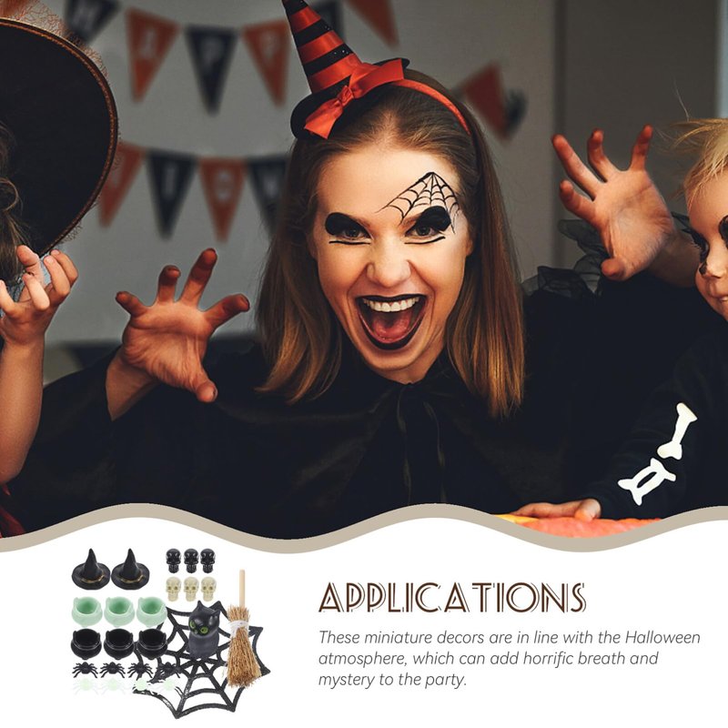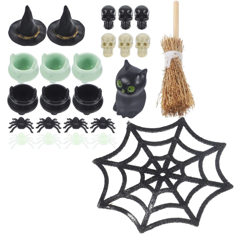 IMIKEYA 25PCS/Set Halloween Miniature Ornaments Mini Figurine Fake Spider Halloween Witch Hat Broom Halloween Miniature Dollhouse Accessories DIY Halloween Decor Party Favor