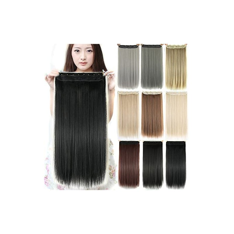 IMISSU Long Natural Thick Hair Straight Clip in on Synthetic Hair Extensions Hairpieces for Women (24 inches, Jet Black)