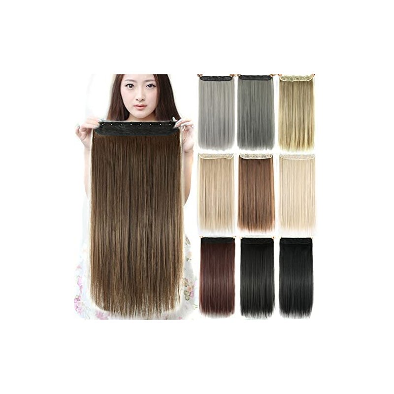 IMISSU Long Natural Thick Hair Straight Clip in on Synthetic Hair Extensions Hairpieces for Women (28 inches, Light Brown)