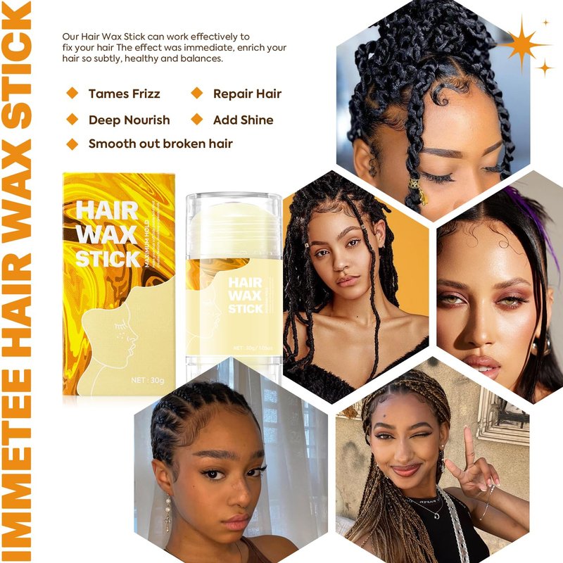 - 【Flyaway Control & Edge Control】immetee Hair Wax Stick smooths & softens hair, adds shine to hair, helps smooth flyaway & frizz at the hairline & nape area, effectively stops split ends & knots & removes Frizzy, not static.