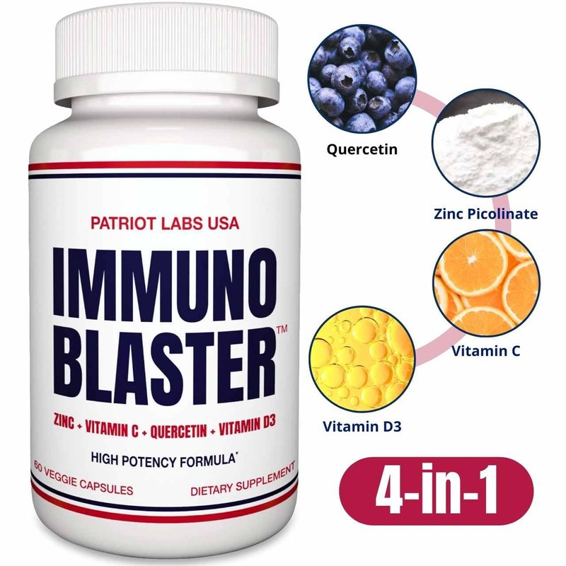 ImmunoBlaster Zinc Quercetin 500mg with Vitamin D and C Antioxidant Immune Support High Potency Quercetin Zinc Supplement for Men and Women - Gluten, Soy, & Dairy Free - 60 Count (Pack of 1)