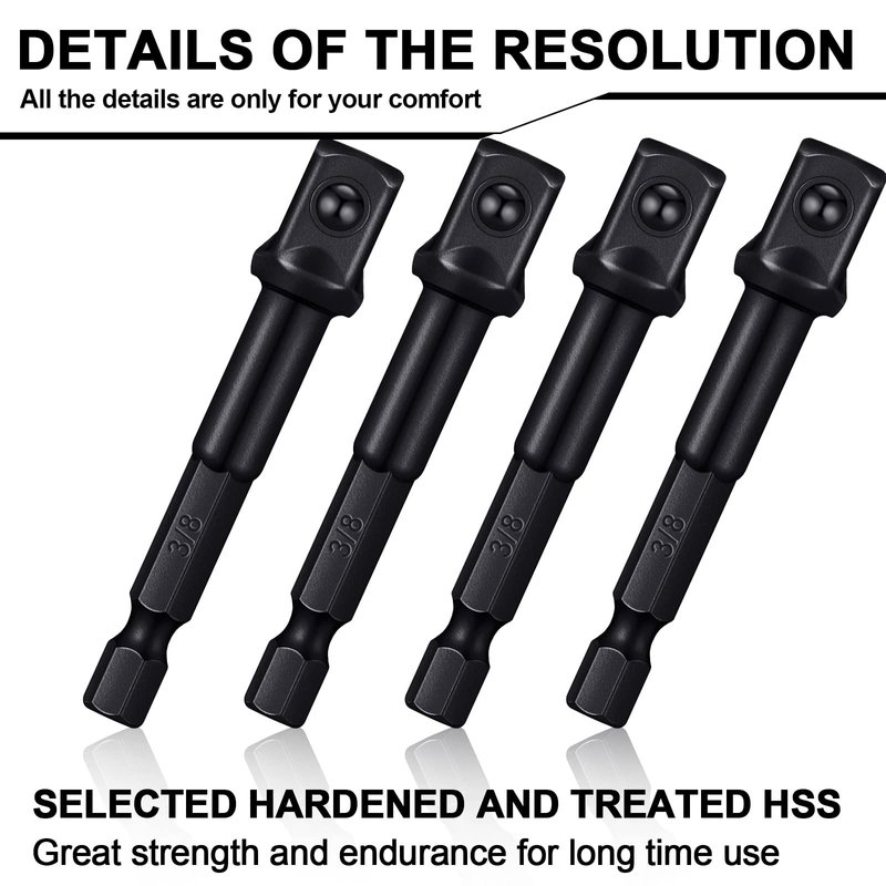 - Material: featuring quenched high speed steel material, the socket bit adapter is sturdy, smooth, with high strength, and can be applied for a long time; The size of the square tip is about 10 mm/ 3/8 inch, and the size of the hexagonal handle is about 6.3 mm/ 1/4 inch; Before placing an order, please confirm the size to avoid an unpleasant shopping experience