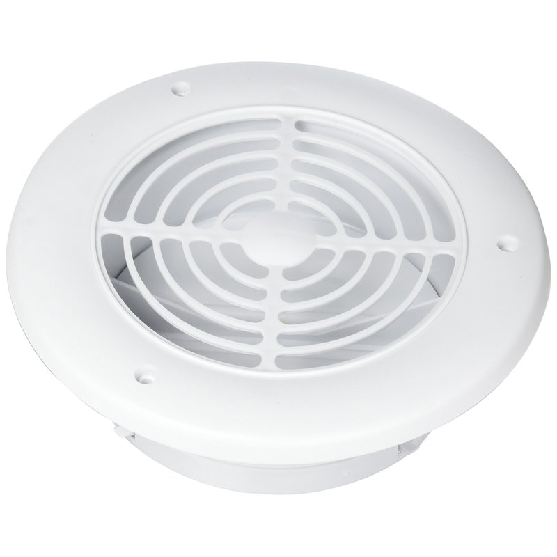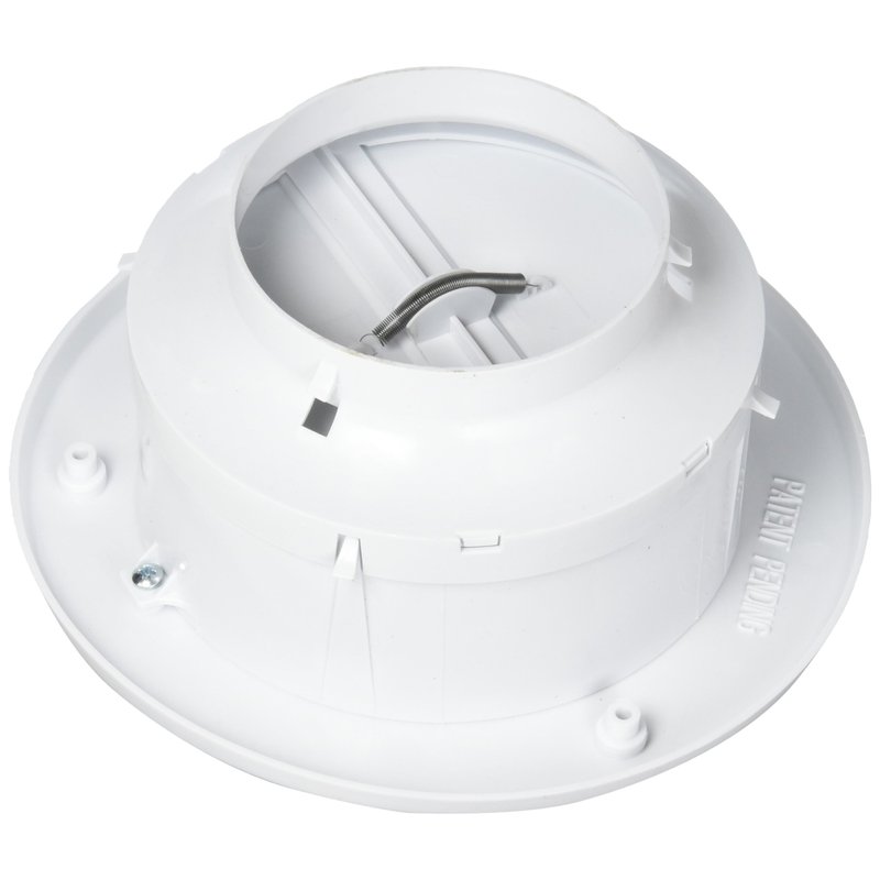 Material: Plastic. For kitchen & bath fan venting Vents moisture & odors to the outside Low profile flush mount design,Mounts easily under soffit,Designed with butterfly damper for maximum airflow and energy conservation,Adapts to 4" and 6" round exhaust duct. Unit height 4.25",unit lenght 8.5",unit width 8.5"