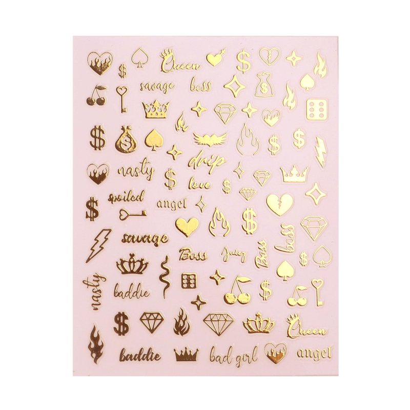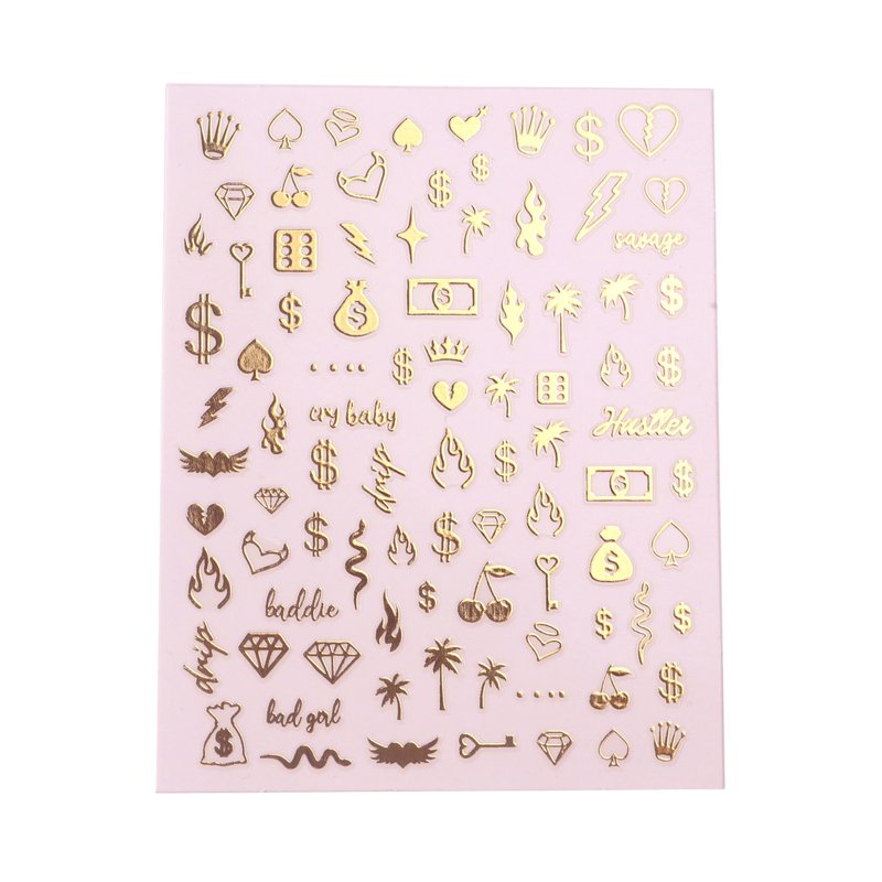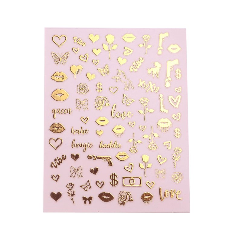 - ✧ 𝐌𝐚𝐭𝐞𝐫𝐢𝐚𝐥: Our mini nail decals are made of thick gold metallic PVC material with a flat surface, amazing adhesion and can be easily peeled and applied to your beautiful nails.