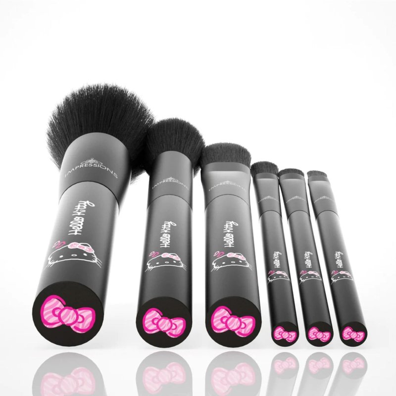 Impressions Vanity 6 PCs Hello Kitty Just Slay Makeup Brush Set, Super Cute Soft Brushes for Foundation, Face Powder, Make up Blending, Eye Shadow, and Liner Application (Black)