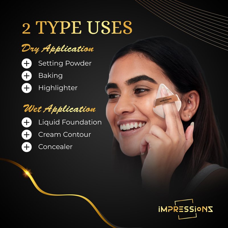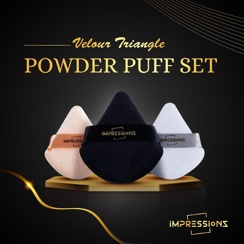 ImpressionZ Triangle Powder Puffs - 3pcs Soft Reusable Velour Powder Puffs for Face Powder, Loose Powder - Under Eye Powder Puff Face Makeup Triangle Puffs Foundation Blending Sponges Set