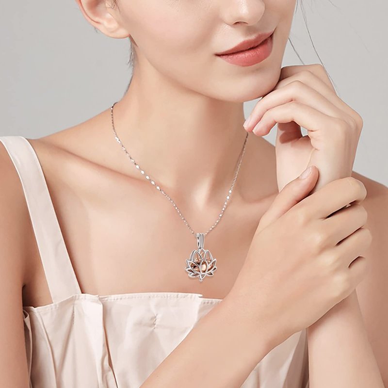 Imrsanl Cremation Jewelry for Ashes - Lotus Flower Ashes Pendant Necklace with Mini Keepsake Urn Memorial Ash Jewelry (Rose Gold)