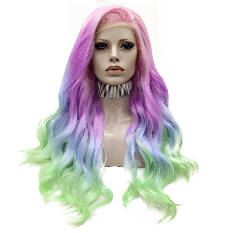 IMSTYLE Rainbow Synthetic Lace Front Wigs Colorful Natural Wave Synthetic Wig for Drag Queen Mermaid Cosplay Party 26 inches