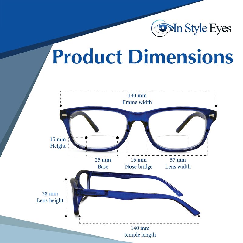 - Premium quality - Seymore bifocal readers is made of high-quality acetate, and aspheric lenses. The frames of these reading glasses measure 140mm across the front, and are 38mm high. The bifocal portion of each lens measures 25mm for the base x 15mm for the height.