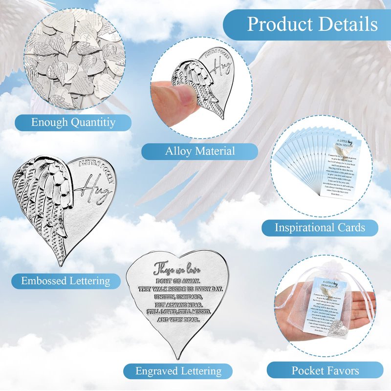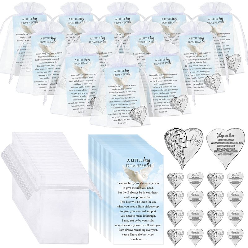 Inbagi 100 Sets Memorial Angel Sign Coins Set Funeral Pocket Token Lucky Pocket Angel Coins Heart Hug Token Poem Cards Organza Gift Bags Celebration of Life Favors Angel Charms Presents for Family