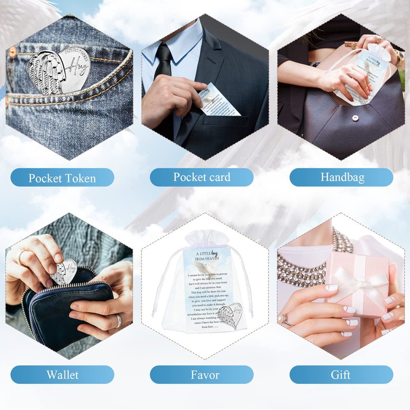 - Spiritual Heart Shape Coins: the memorial coin is designed with the shape of heart, engraved with angel's feather on the front side and poems of mourning on the back, meaningful and warm, can be a keepsake and gift for people who lose someone important