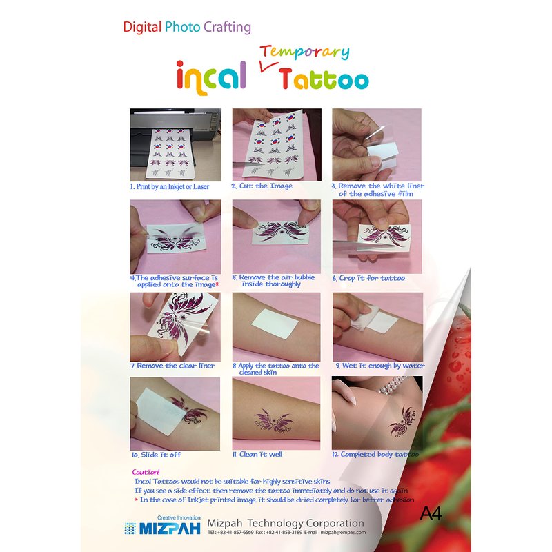 - Everyday temporary tattoos: with your idea and fashion using common Laser printers& Inkjet printers.