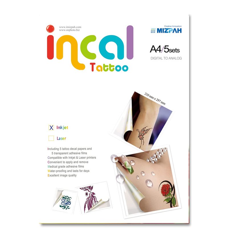[Incal Tattoo] Inkjet & Laser Printable Waterproof Temporary Tattoo: 5 Sets(8.27 inchx11.7 inch) - Hobby & DIY Personalized Tattoo on your body (Inkjet Printer)